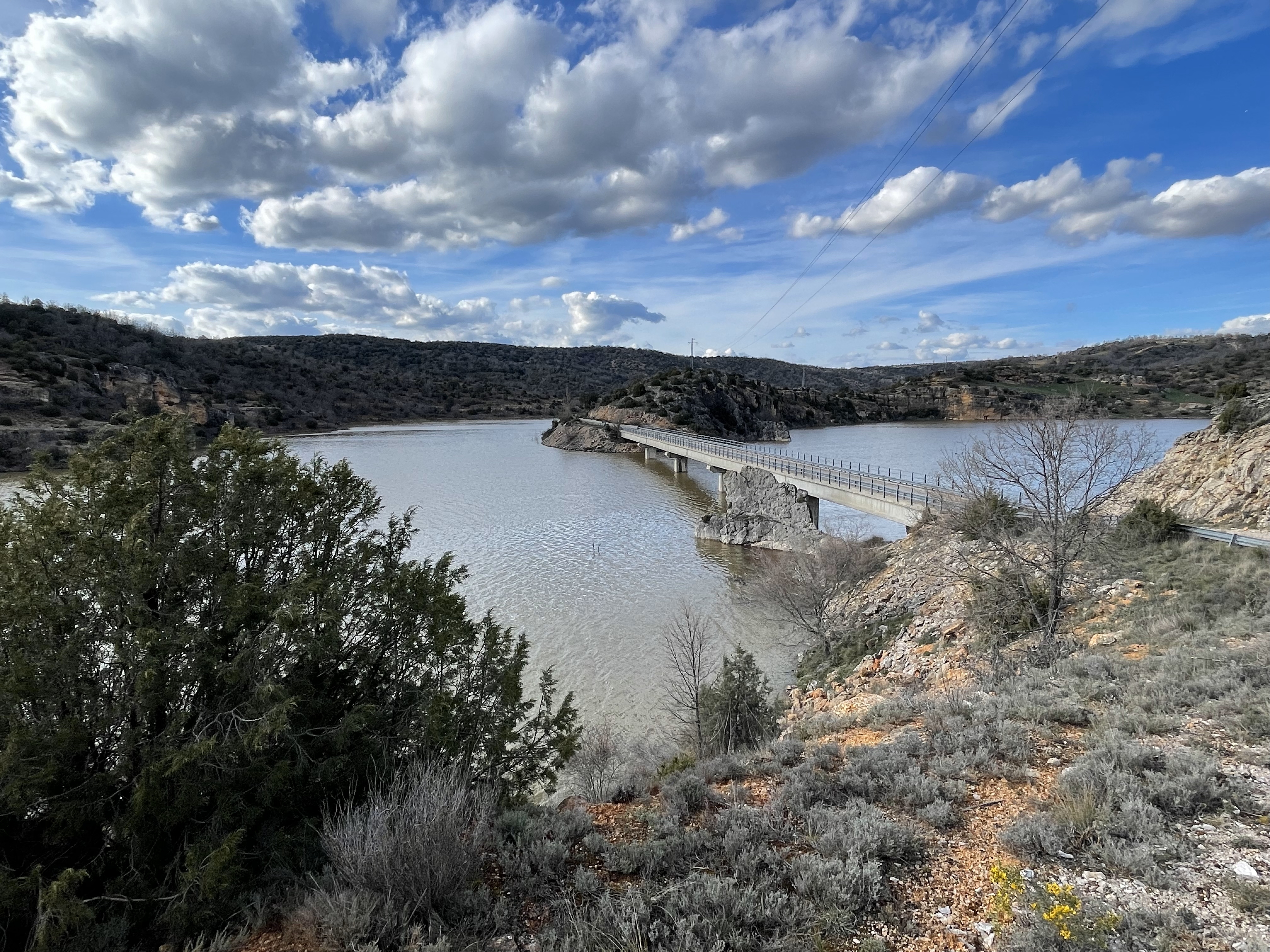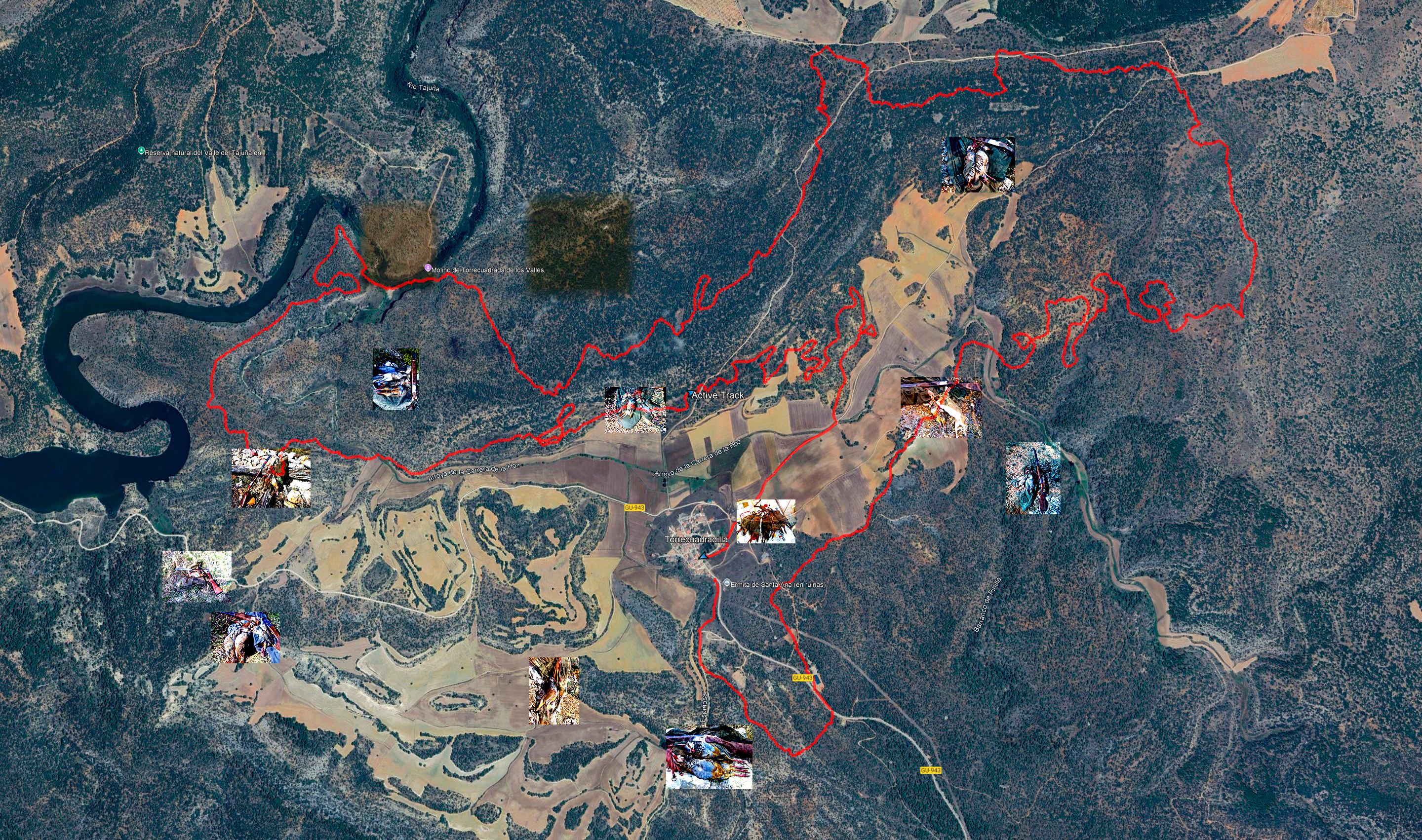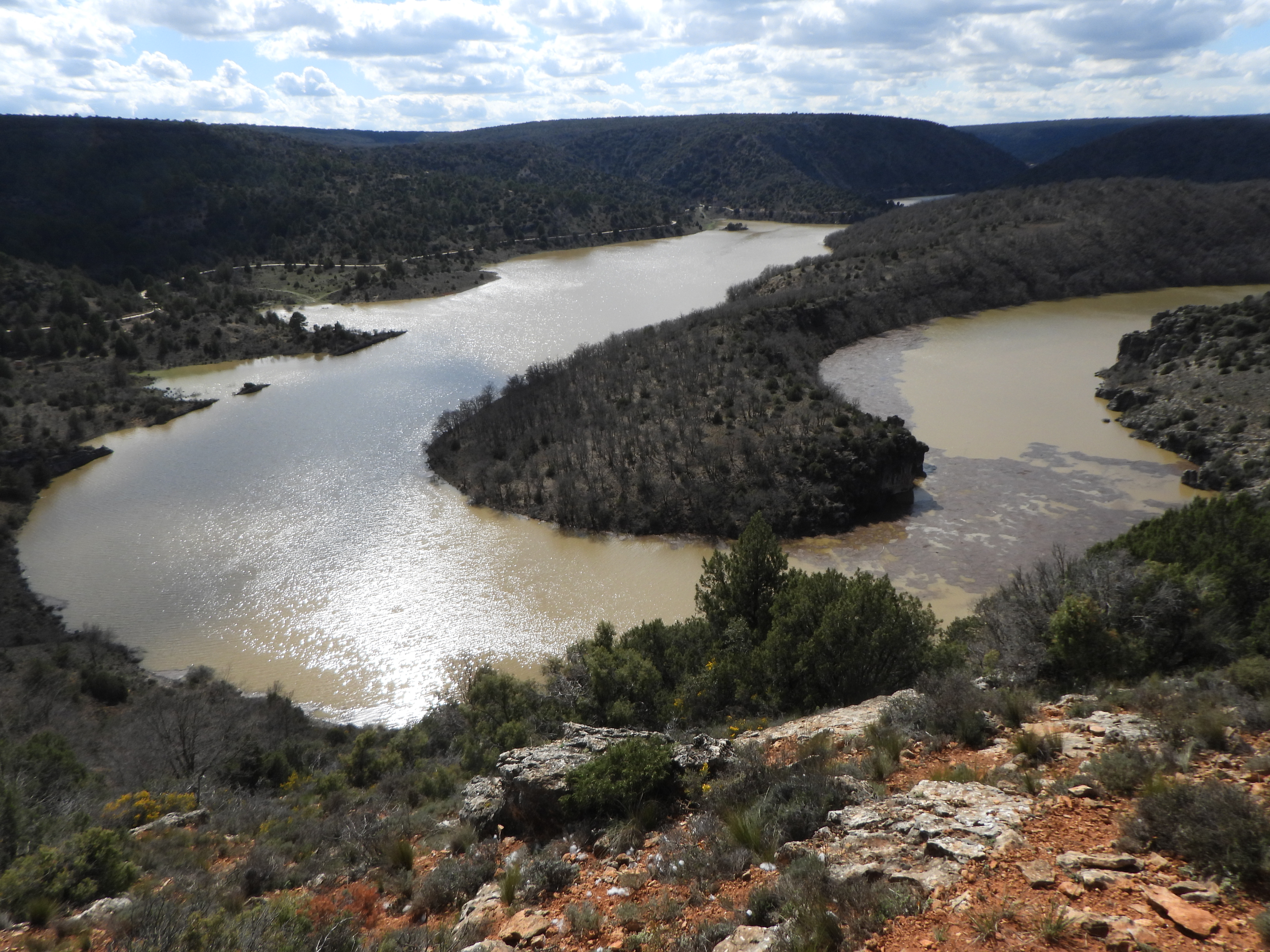 | Después de un buen rato grabando a este macho y recibiendo un par de visitas más de otros que casi se toparon conmigo a mi espalda, inicié una pequeña caminata hasta el alto de la Muela. En el camino pude fotografiar la cola del pantano con el agua de color barro y al llegar también vi buitres en sus nidos que ya habían empezado a incubar los huevos. Entre lo relajante de las vistas no dejaban de rondarme los recuerdos en un día que forzosamente sabía a nostalgia. Entre otras cosas me preguntaba si durante ese paseo pisaría en algún momento donde no lo hubiera hecho antes, porque concretamente esa parte del terreno la he recorrido innumerables veces, desde niño en los paseos de la escuela con las maestras, ojeando para los cazadores, de joven yendo de merienda o ya de adulto cazando , haciendo senderismo o corriendo . De solo una pequeña parte de esas caminatas hechas en los aproximadamente 10 últimos años, queda constancia en wikiloc como puede comprobarse pinchando aquí .